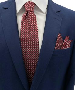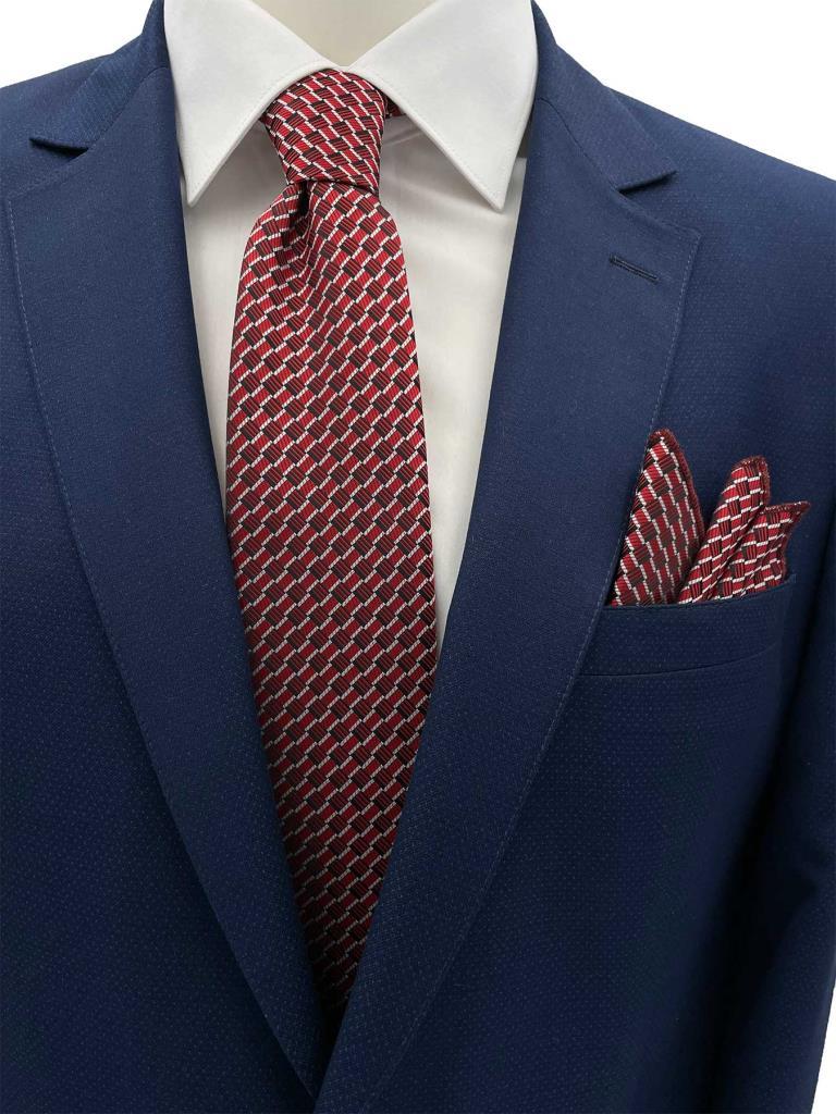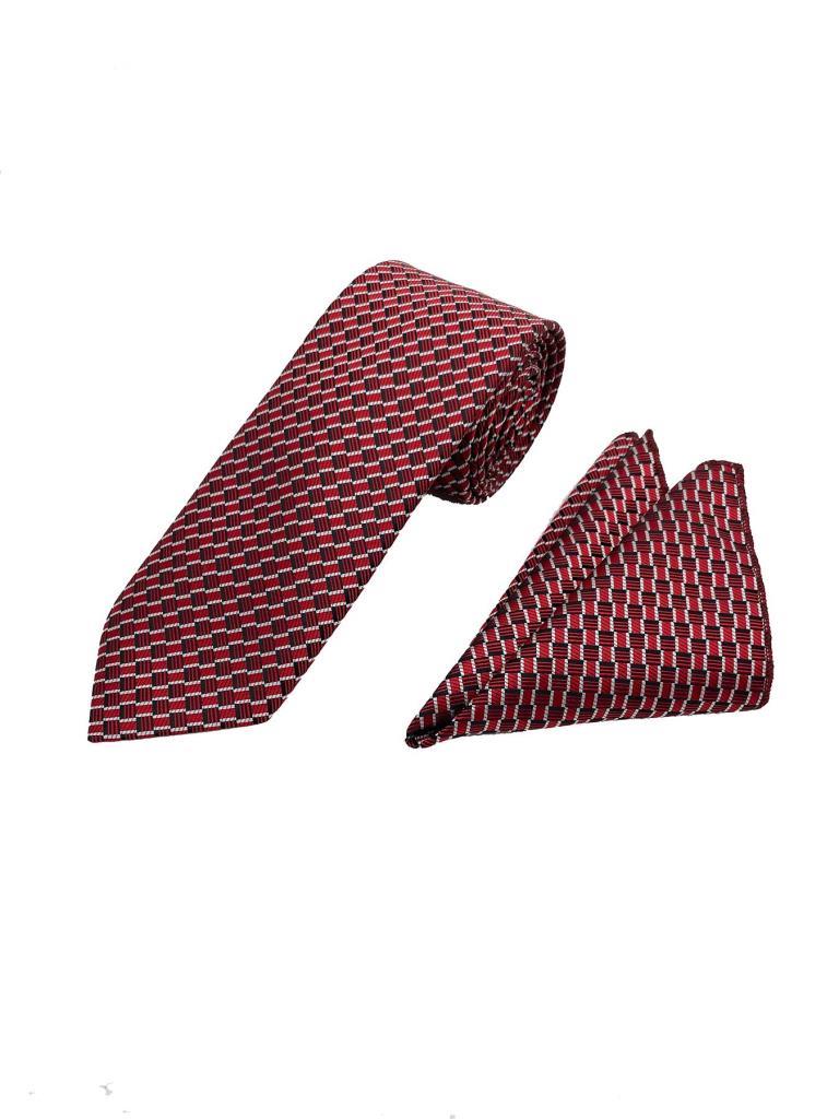 Yetişkin erkekler için özel olarak tasarlanmış, şıklığı ve rahatlığı bir arada sunan Kırmızı Siyah Beyaz desenli kravat mendil seti.