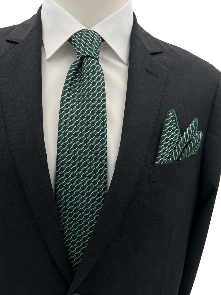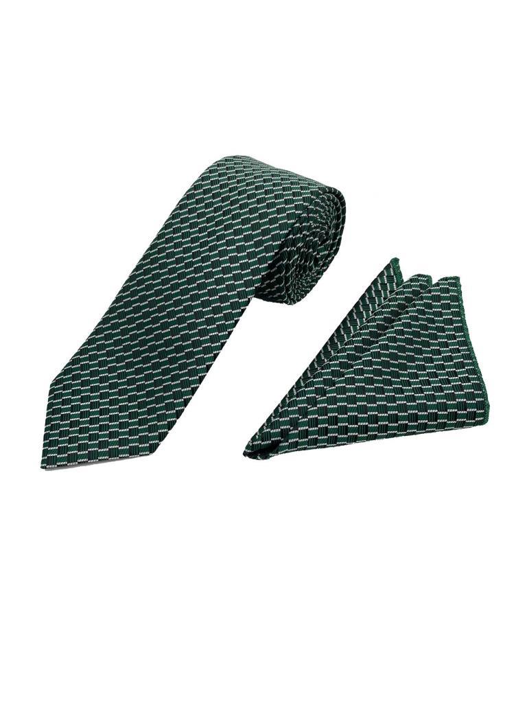 Yetişkin erkekler için özel olarak tasarlanmış, şıklığı ve rahatlığı bir arada sunan Yeşil Siyah Beyaz desenli kravat mendil seti.