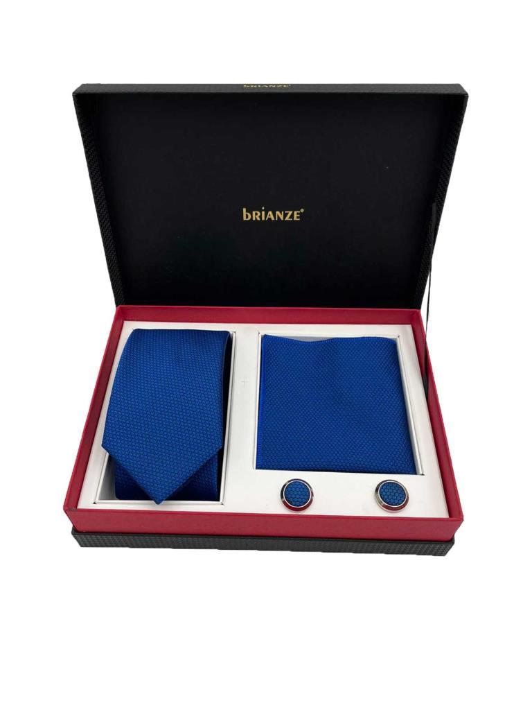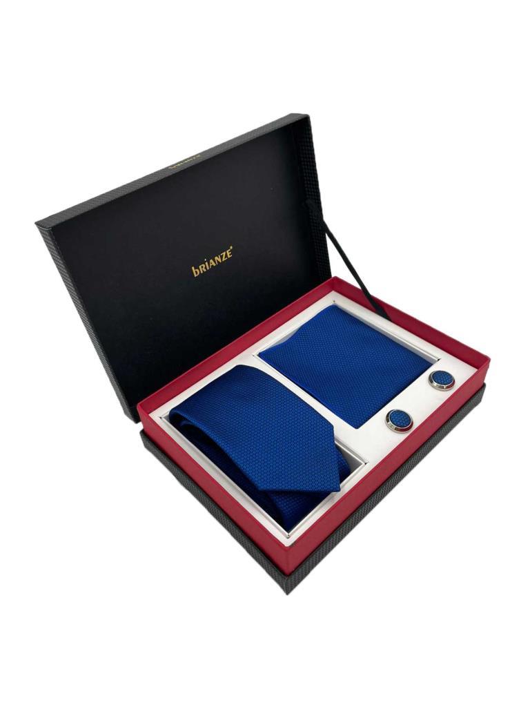 Brianze Gece Mavisi Kravat Mendil Ve Kol Düğmesi Kutulu Set