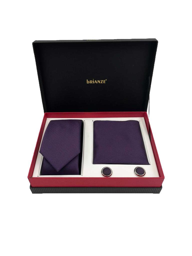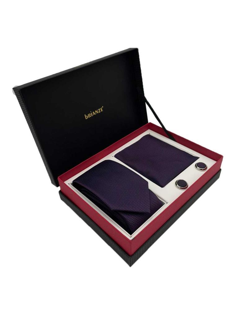 – Yetişkin erkekler için özel olarak tasarlanmış, şıklığı ve rahatlığı bir arada sunan Mürdüm Renk kravat mendil ve kol düğmesi seti.