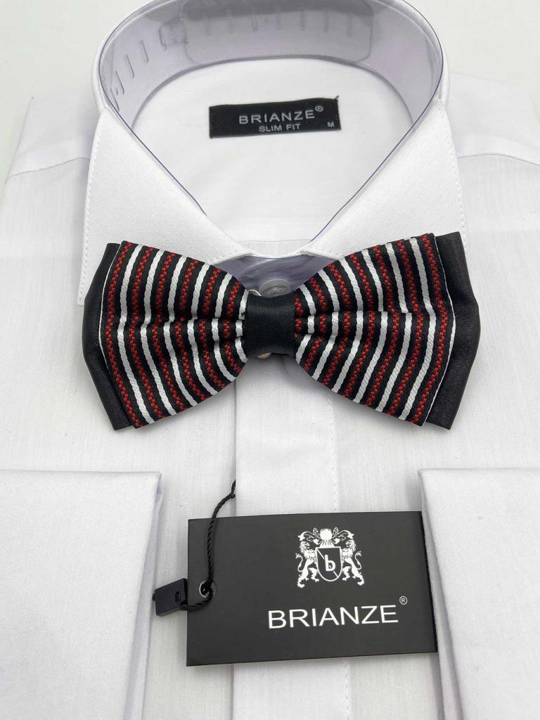 Brianze Siyah Beyaz Kırmızı Çizgili Desen Papyon