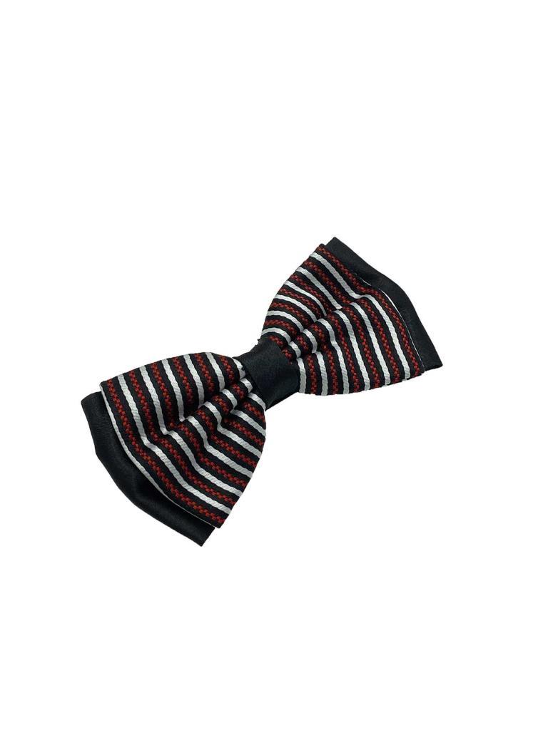 Siyah Beyaz Kırmızı Çizgili Desen Papyon , şıklığı ve rahatlığı bir arada arayanlar için ideal bir seçenektir. Bu özel aksesuar ile her anınızda şık bir görünüm yakalayın.